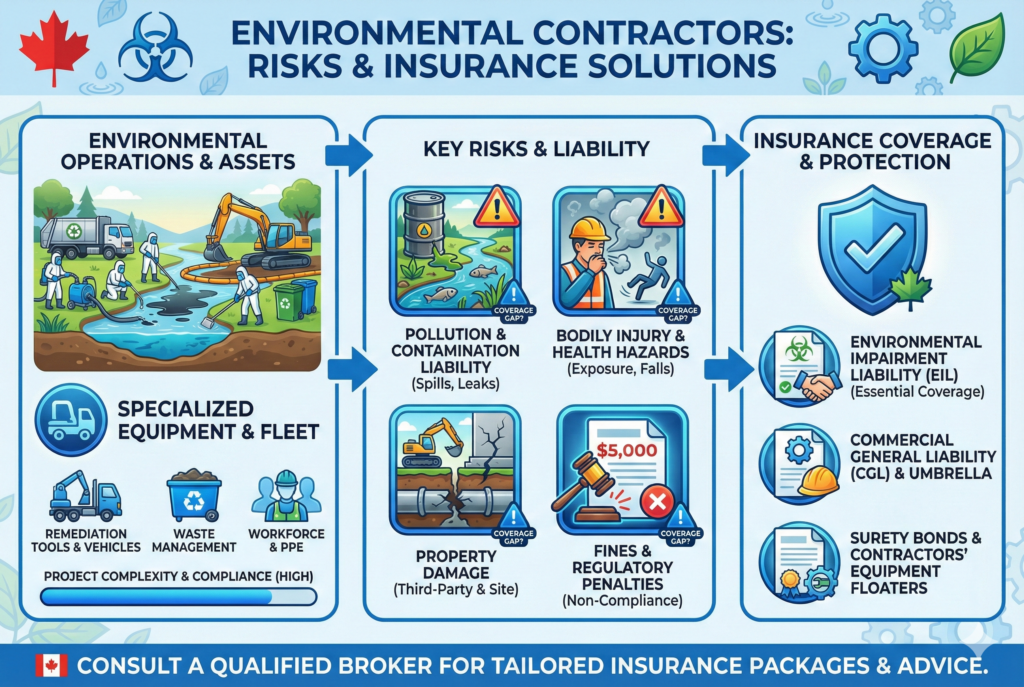 Asbestos abatement is one of the most highly regulated and high-risk specialties in Canada’s construction and environmental sectors. Removing or remediating asbestos-containing materials exposes contractors to serious health, legal, and financial risks—making specialized insurance non-negotiable. 🛡️ Key Risks Asbestos Contractors Face Asbestos work commonly involves: Claims can be severe, complex, and multi-million dollars in scale. […]