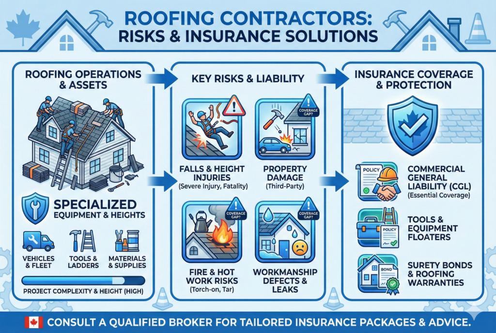 Roofing is one of the highest-risk trades in Canada. Working at heights, handling heavy materials, and exposure to weather mean roofing contractors face serious liability and financial risks every day. Proper insurance isn’t optional—it’s critical. 🛡️ Key Risks Roofing Contractors Face Roofing work commonly involves: Even a small mistake can lead to costly claims or […]